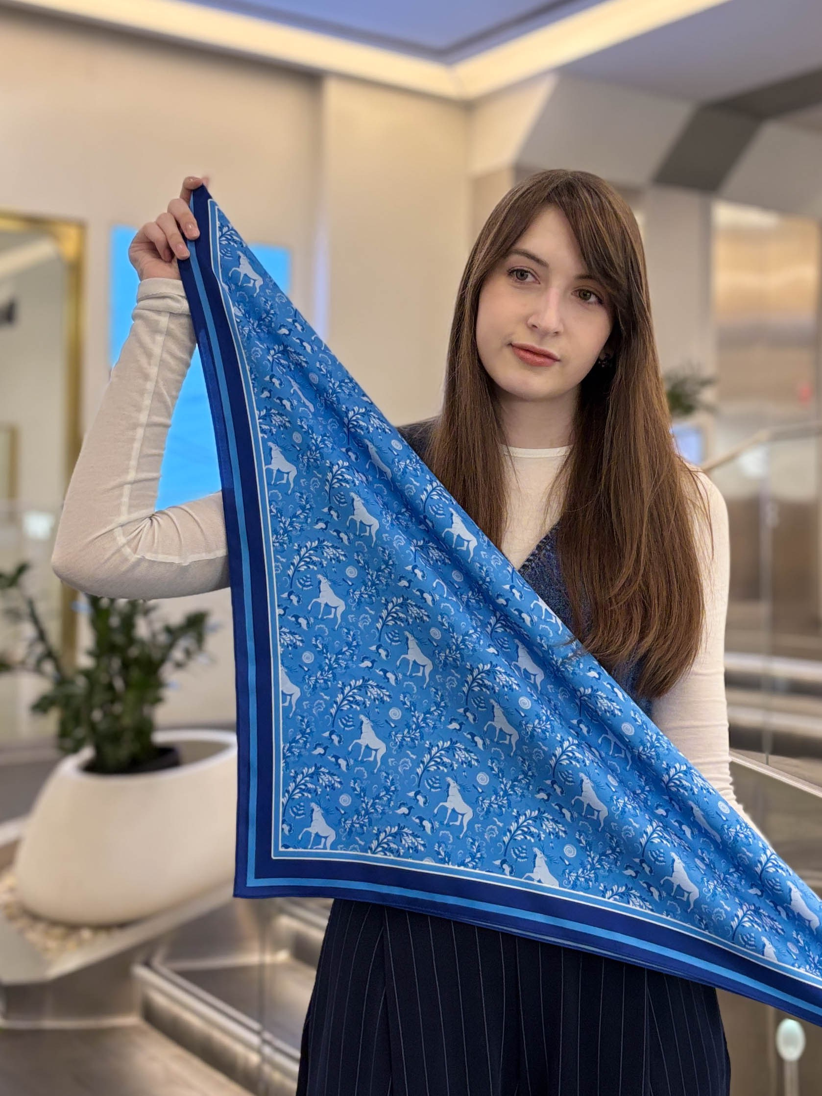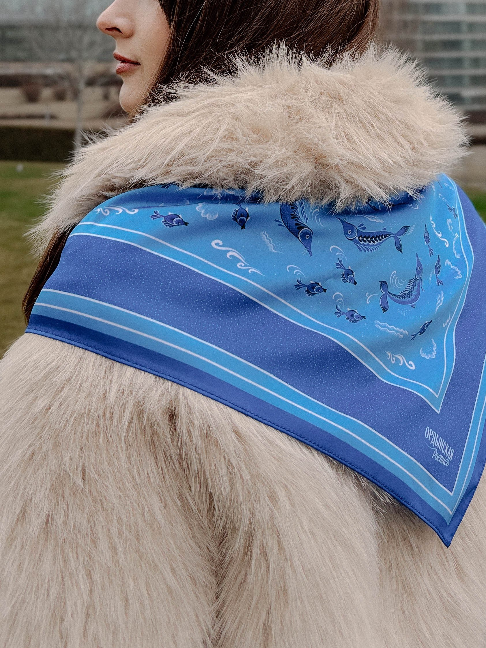 90×90 см — 2800 руб — подходит чтобы повязать на голову и шею одновремено как на 1 фото.